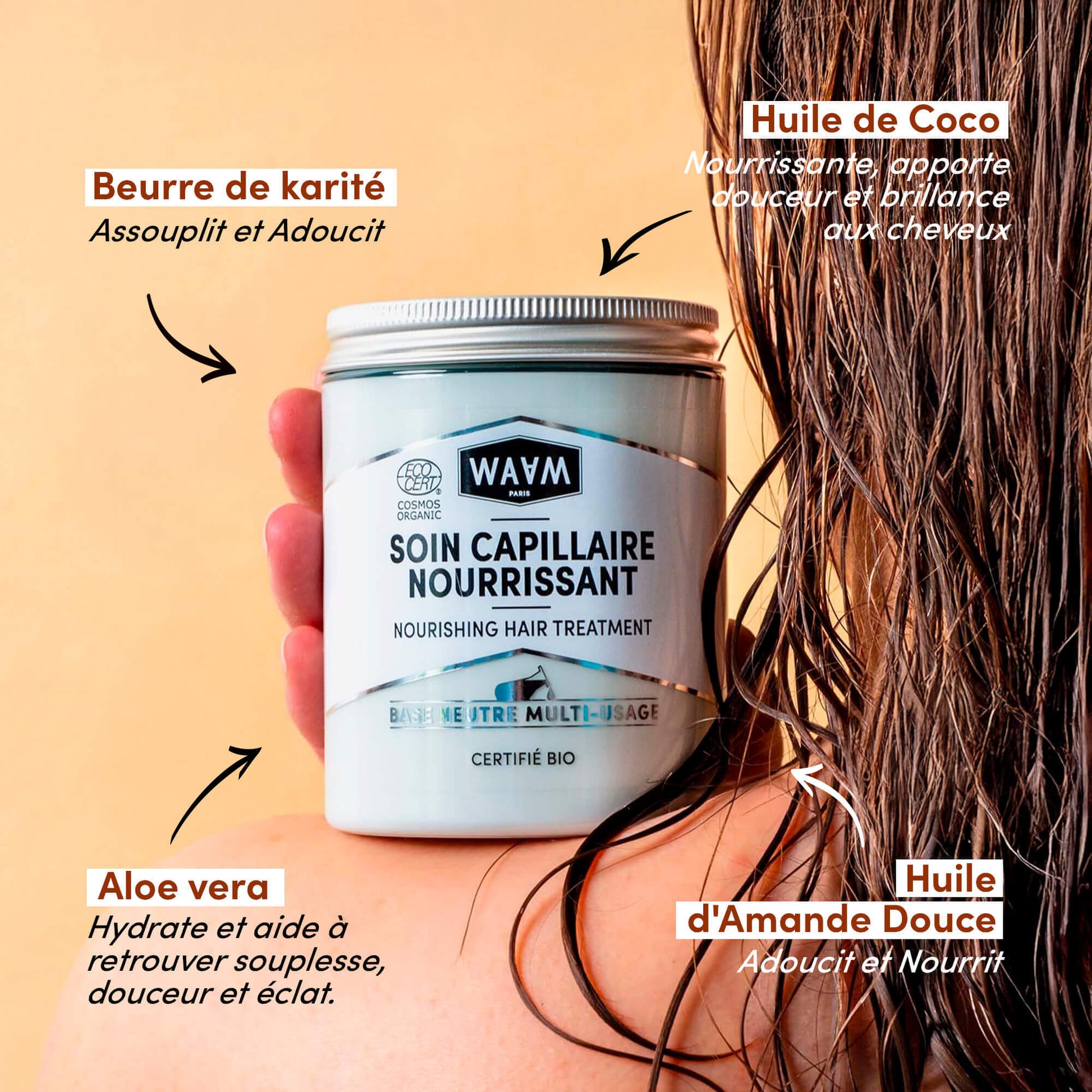 WAAM's number one hair care product, the Nourishing Hair Mask, is a multi-purpose gem. With a healthy formula based on Aloe Vera and Shea butter, this nourishing treatment is suitable for all hair types. Use it as a mask, conditioner, or leave-in treatment to restore your hair's nourishment, softness, and shine. Customize it or use it as you wish.